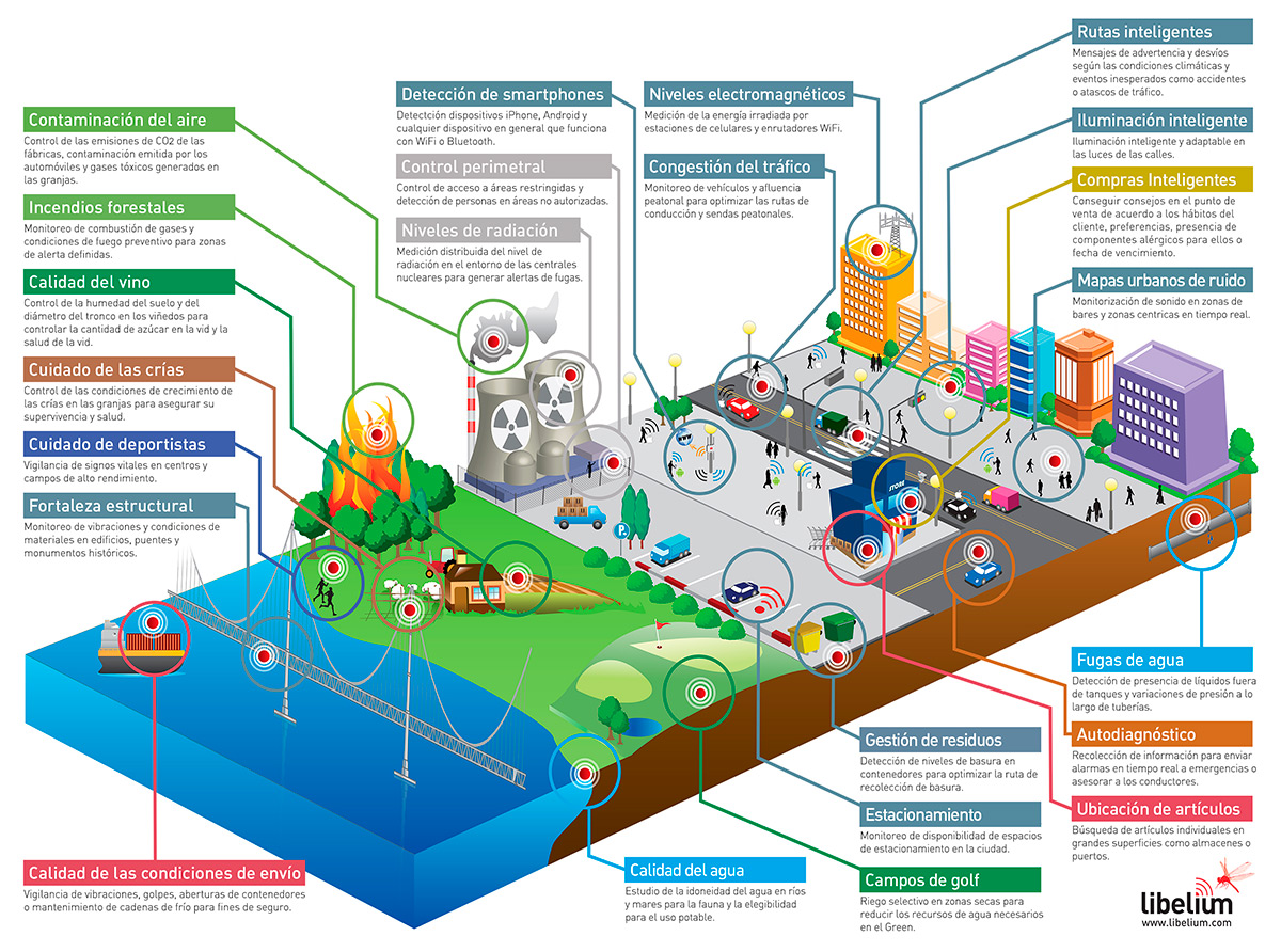 La amplia variedad de sensores permite un monitoreo integral que abarca las áreas de seguridad y emergencias, salud, logistica, medioambiente, control industrial y más datos relevantes para Ciudades Inteligentes.